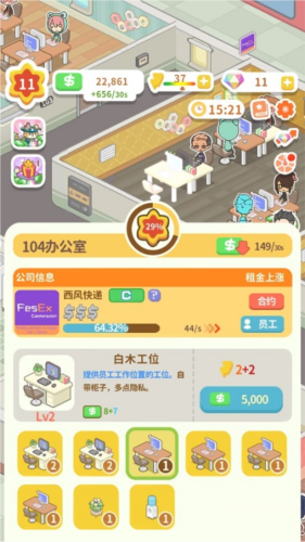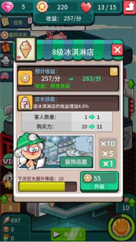 三、严重伤肝,初始店层数越往后越伤肝,包括门店装饰等等,伤肝得不行,金币单是升级賺钱都不太够用,更别说拥有好一点的门店。