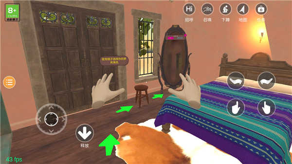 左右手指姿势可以操控手拿起物品,当物品出现左边这个图标提示时,则说明可以拿起或是操作;