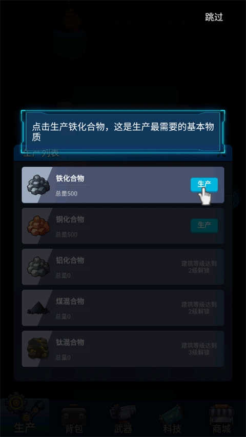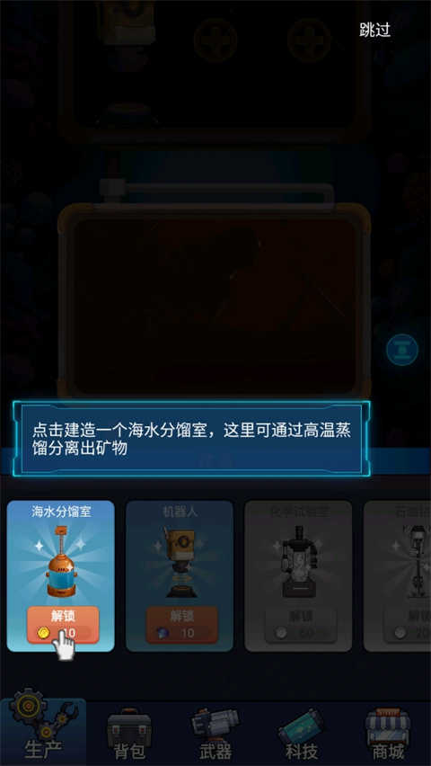 1、打开避难所海底工厂手游,点击左下角的生产;