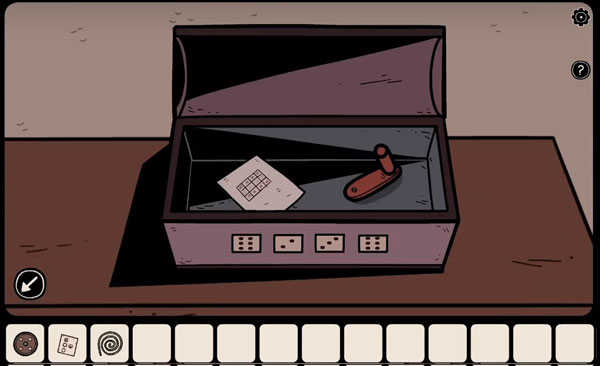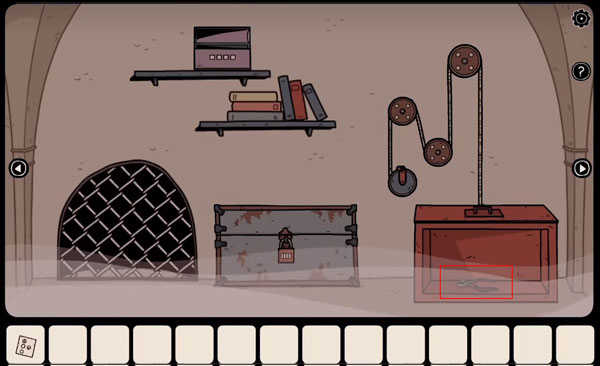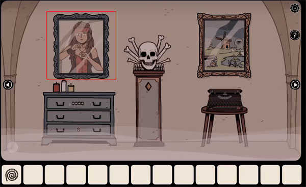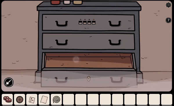 拿起凳子下的「绳子」,然后观察相框中描绘的五样物品(如下图所示),记住它们的位置及其对应的符号。打开柜子取出「滑轮」和「钥匙」,随后再取出口袋里的「提示纸」。
