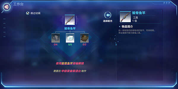 目前我的起源中有三种鱼竿,最简单的便是树枝鱼竿,制作简单,前期必备,其次是鲸骨鱼竿与合金鱼竿。