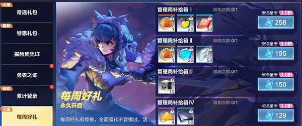 每周好礼送不停,3折礼包任你选9折不行、8折不行、7折也不行,策划大大你是不是疯了你到底想打几折,难道要打骨折吗?策划大大说:本次终极封测每周好礼活动全部3折、全场都3折。