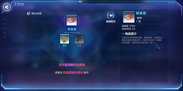 制作鱼料理的食材都是需要稀有鱼才可以制作,属于战斗食物,方便于战斗时使用。