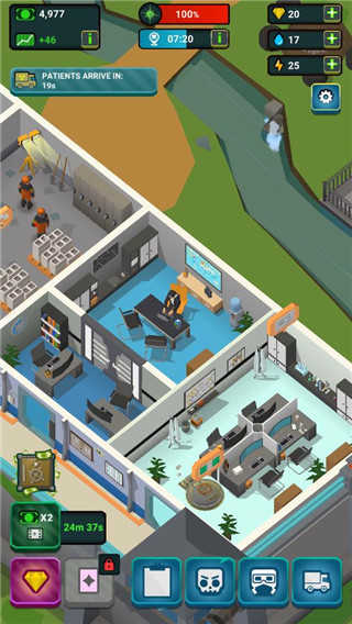 《僵尸医院大亨》是一款以放置休闲为主的模拟经营游戏。目前版本暂不支持中文,因此接下来让我简要向你介绍一下游戏流程。