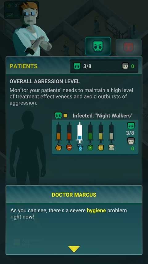 僵尸是最难,最危险的患者。如果您的医生不给他们适当的照顾,他们可能会大怒并咬伤医务人员。整个僵尸医院都可能受到感染的危险。这就是为什么认真观察患者的情绪,为其提供娱乐并提高病房舒适度的重要原因。