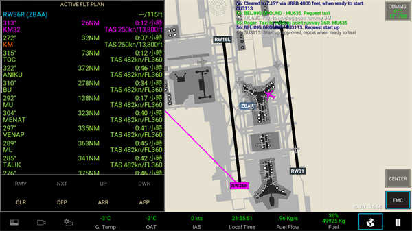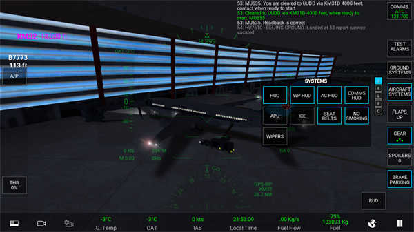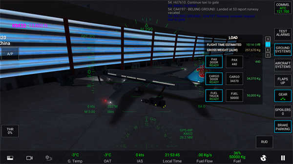 然后就跳转到了登机门,此时的飞机发动机没有开启,动不了,这时啊,我们需要先给塔台打声招呼。