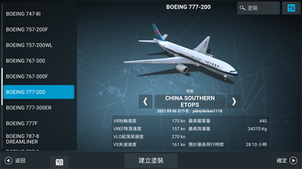 点击立即飞行后,里面提供了许多飞机供您选择,我个人比较偏爱波音777-200,并将其设为常用飞机。
