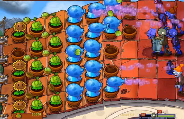 有了足够的植物后,就可以消灭可恶的僵尸了,总之别让它靠近你的房子。