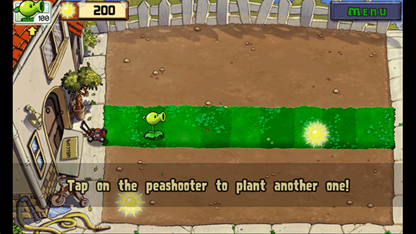 进到游戏内,先点击豌豆射手种在草地上。