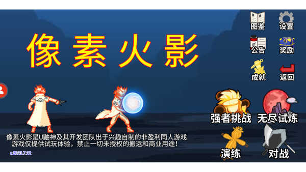 像素火影仙途自九鸣是一款以经典动漫《火影忍者》为基础的像素风格手机格斗游戏。该游戏由玩家自制,构建了一个充满挑战与冒险的火影世界。这是一款融合了动作、冒险和格斗元素的手机游戏,适合喜欢《火影忍者》和像素艺术的玩家。游戏中不仅重现了动漫中的经典角色和场景,还提供了多样化的战斗方式和挑战模式,让玩家能够充分体验原汁原味的火影世界。