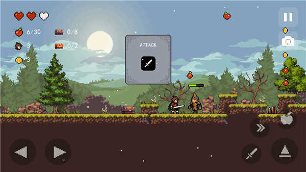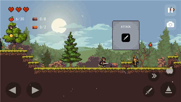 苹果骑士中文版是一款有趣的休闲像素游戏,具有复古的街机风格,操作和玩法非常简单。你将扮演一位英勇无畏的小骑士,穿上闪亮的盔甲和宝剑,开启一段保卫王国的传奇之旅!感兴趣的小朋友欢迎下载。