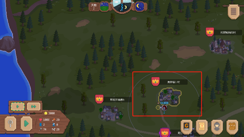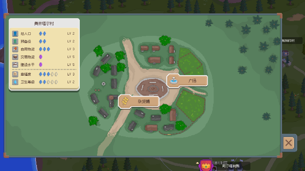 会给玩家展示出该村庄的一些基础信息和可以交互的场景;