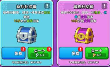 主公可在商店领取新兵补给箱和豪杰补给箱,打开可获得银币装备等,【史诗级】的装备也包含其中。激情开箱,欧皇就是你!