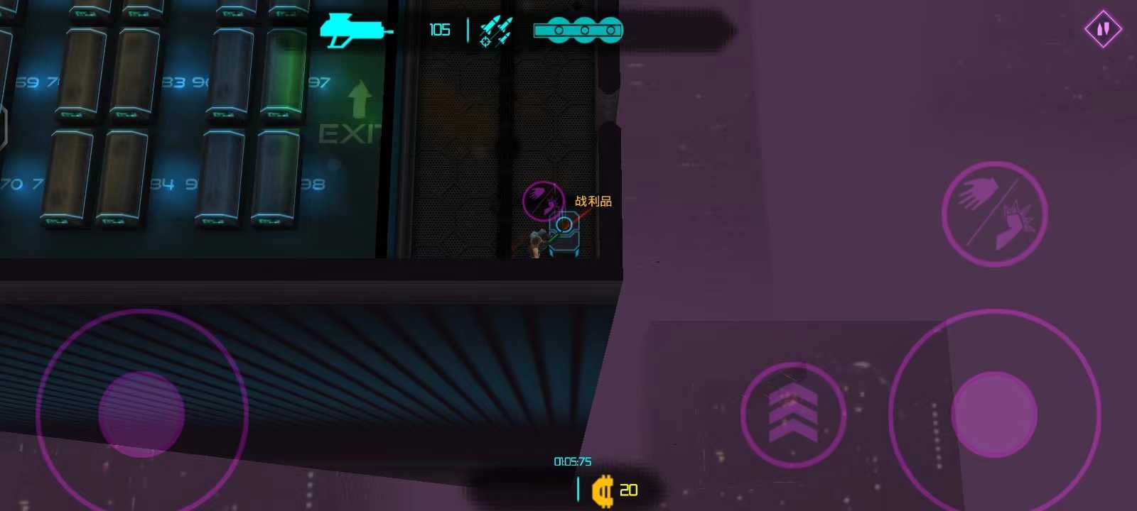 进入游戏之后,左边控制角色的移动,右边则是射击;