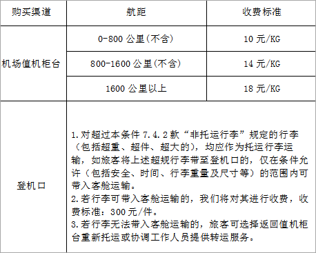 您携带的行李如果在数量、尺寸或重量上超过了本条件7.4.2条“非托运行李”的规定,则应将其作为托运行李进行运输。