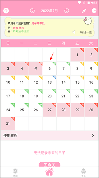 (3)按照上图绿框提示选中日期6号,再打开如红框所示的姨妈走了吗开关,设置成功。
