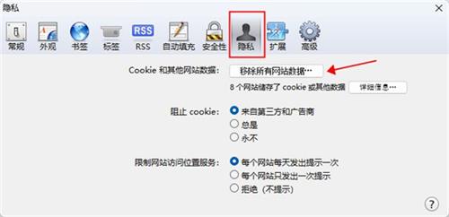 “隐私”下的设置。这些设置适用于所有网站。例如,某个网站可能会要求你允许跨站跟踪、显示 IP 地址,或允许使用 Cookie。