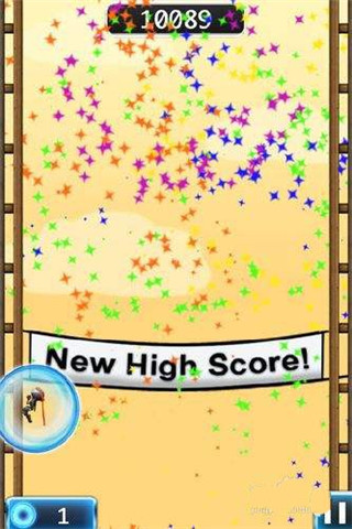 连续获得三个飞镖,则变身飞镖左右跳跃向上升。(PS:获得道具,玩家在跳跃过程中会作出拔刀攻击的动作。简单说就是在飞镖向你飞行的路上,如果你此时处于跳跃状态正面和飞镖碰上,系统则判定你击打了这个飞镖,获得飞镖道具一个;若飞镖击中你时你没有跳跃动作,则系统判定你遭受攻击,则游戏结束。其他道具获取方式一致,不加详述。)