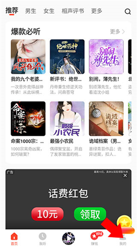 1、下载并打开懒人听书,点击右下角“我的”。