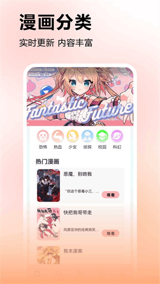 1、实时更新最新的热门漫画资源,手机去阅读获取方式更加简单。
