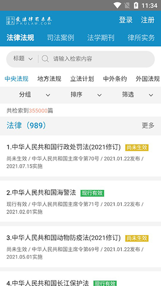首先在手机上打开北大法宝app,如下图所示,其中包含了众多法律上的案例、期刊、法律法规等等;
