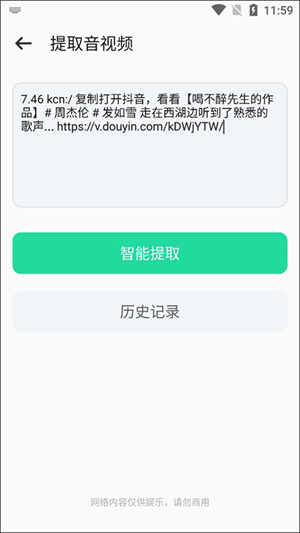 点击过后我们需要复制需要提取音频的分享链接然后粘贴在上面的输入框,然后再点击智能提取就可以了。
