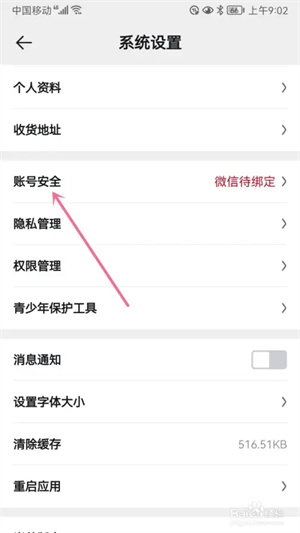 进入系统设置的页面选择“账号安全”选项