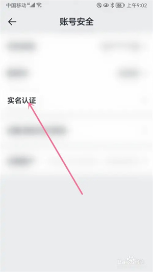 随后在账号安全的页面选择“实名认证”选项