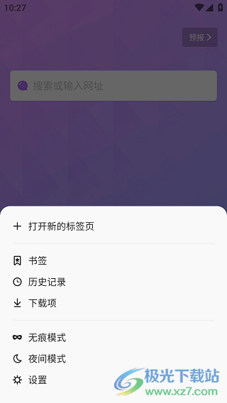 专属的浏览器界面,常用的网站和工具,一键就能直达,方便快捷,夜晚浏览也不伤眼,夜间模式一秒设。