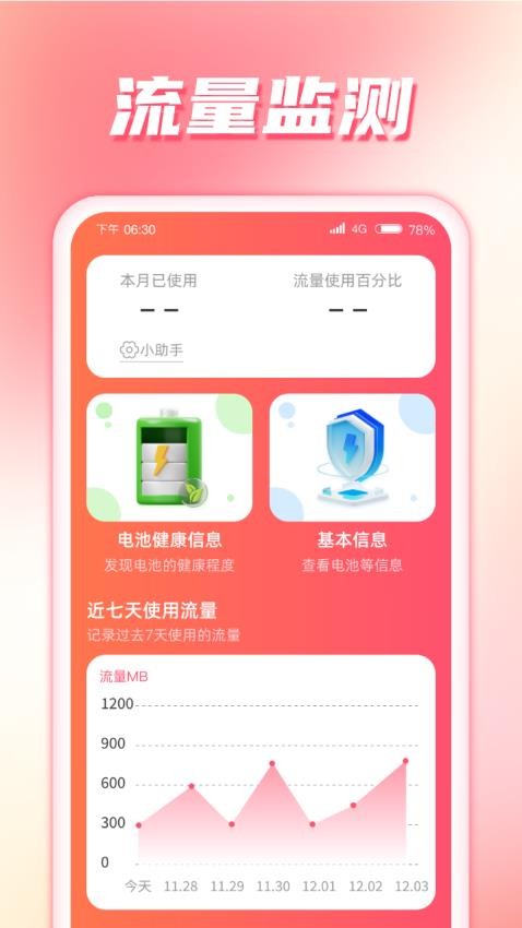 秒连 流量app 最新版是一款帮助用户监控手机流量使用状况的应用程序。在这款应用中,手机流量消耗数据被直观地展示出来,用户可以在线查看已使用的流量数据,从而更好地了解每月的流量使用情况,并实现对手机流量的实时监控。此外,该应用还清晰地展示了手机电池的健康状态和基本信息,使用户能够查看并了解手机电池的健康状况。它还提供了网络测速功能,用户可以一键测试网络速度,以便了解当前的网络状况,确保在良好的网络环境下使用手机。有需求的用户快来下载秒连流量免费版应用程序吧!