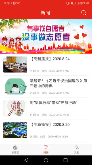 3.志愿资讯,浏览省内志愿资讯,实时掌控公益信息。