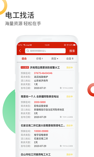 3.电工师傅可以直接使用电气服务云平台的竞标功能进行对接,也可电话直接联系,大大提升了电工接活的效率