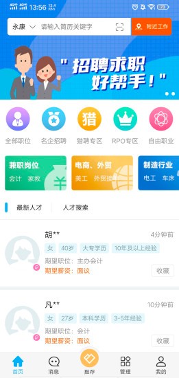 环讯人才网为金华、永康、武义、义乌、缙云等地用户提供在线招聘、RPO、猎头等人服资源服务。是金华地区求职招聘的得力助手。