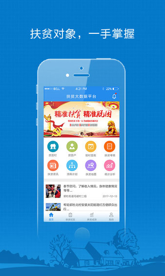 扶贫大数据是一款依托互联网+和大数据等先进技术,协助政府和党进行扶贫工作的应用程序。