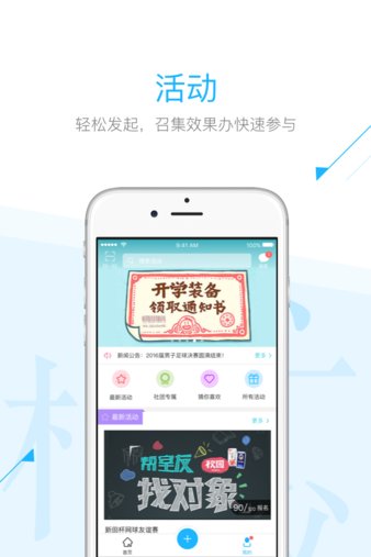 3、活动创建让学生们轻松发起活动,召集小伙伴快速参与。