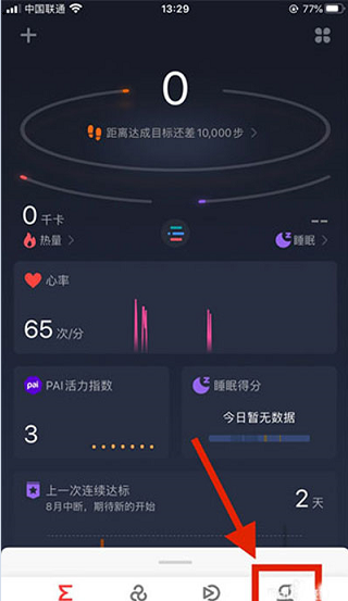 1. 打开手机里的Zepp应用,在主界面中选择右下角菜单里的“我的”部分。