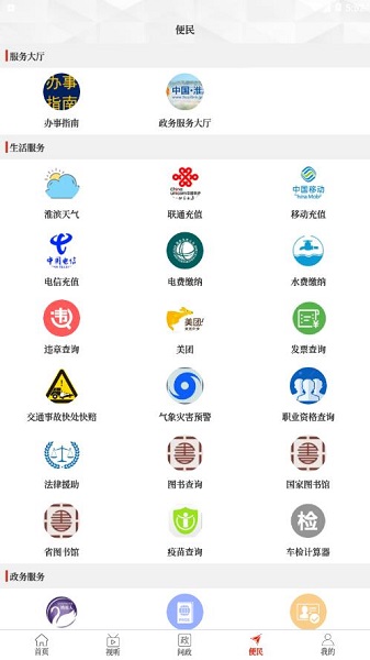3、便民生活服务天气查看充值缴费违章查询