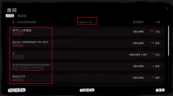 创建的房间有三个地图(医院、学校、下水道)和两种模式(逃离、生存),确定有几个朋友就选几人房(人满才能开始)。