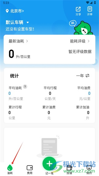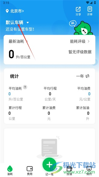 1、进入软件后需要保证导航栏选择的是油耗。