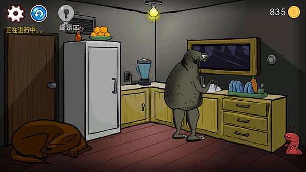 点门把,猫来,点蛛网,点烂苹果,虫吐浆,猫走,点猫,猫又来,点门上树影,进洞,点第一个钮,点第二个钮,点第三个钮,点第四个钮,点第一个钮,出来,点猫,猫死,点门把。