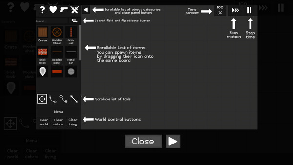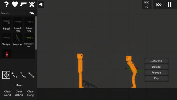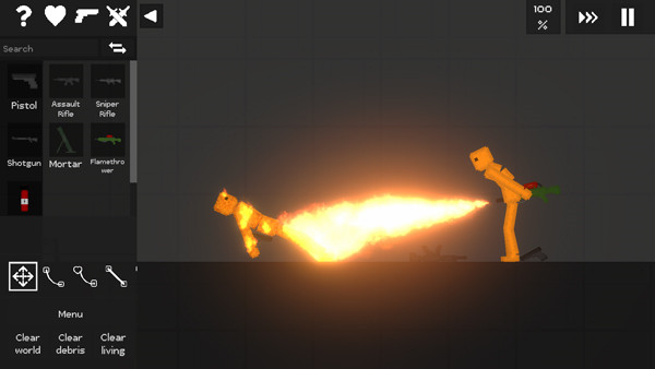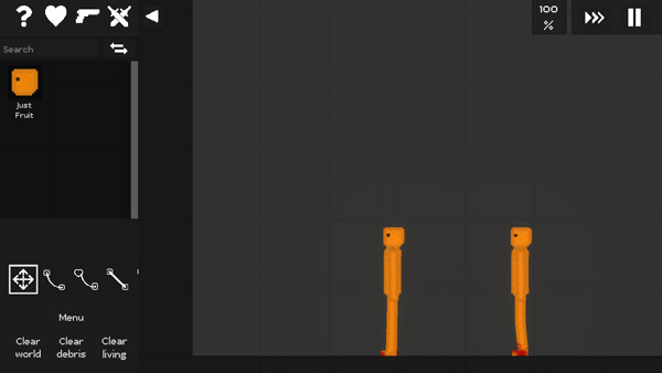 进入游戏如图,玩家可以自由添加物品、人物、武器等;
