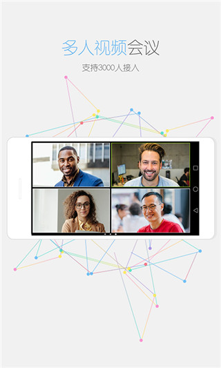 音视频会议:提供稳定流畅的多人音视频会议体验,支持电话入会,视频质量根据网络自适应调节。