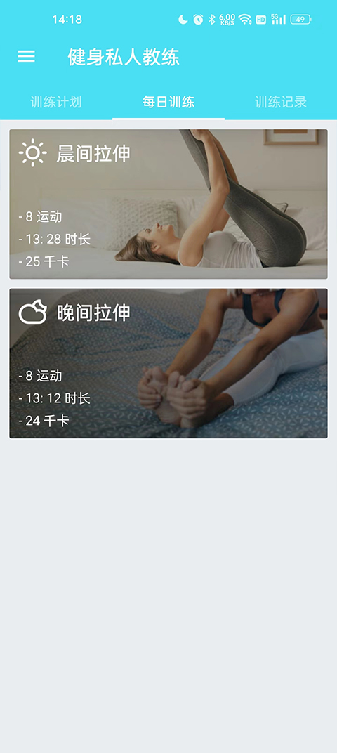 每天的早餐拉伸和晚间拉伸是必备科目,有效的减少肌肉的不适感。这些拉伸动作不仅能够缓解肌肉紧张,还能提高身体的柔韧性,为后续的锻炼做好准备。通过坚持每日拉伸,用户可以显著降低运动损伤的风险,让健身过程更加安全舒适。