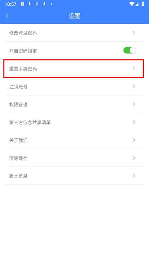点击重置手势密码;