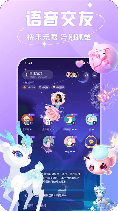 通过语聊房,你可以与用户进行语音互动,让快乐无处不在,帮助每个孤独的年轻人获得情感上的慰藉。