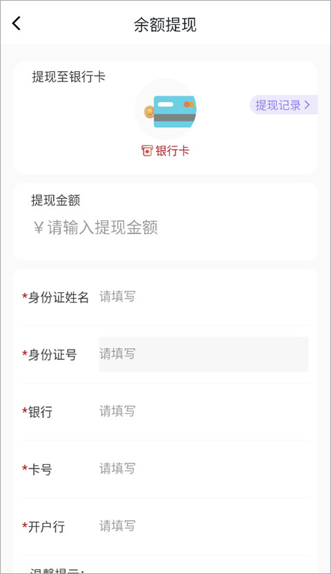 然后进入“余额提现”,输入相关绑定的卡号信息即可。