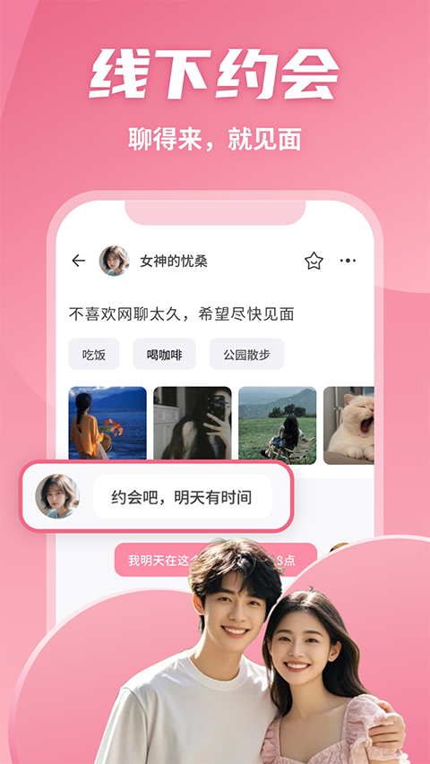 【有恋】实现聊天、交友、线下约会一站服务!无论是线上互动还是线下见面,都能轻松完成,满足用户多样化的社交需求。