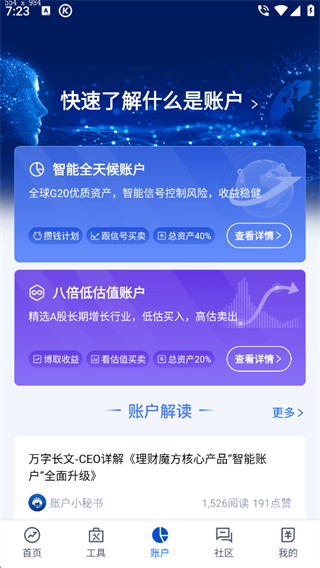 理财魔方是一款智能基金投顾平台,融合金融专业洞察与前沿科技能力,构建起集“选基金、用工具、学攻略、跟牛人”于一体的综合理财生态。平台已服务超百万用户,穿越多个牛熊周期,累计基金交易规模突破1300亿元,持续为用户创造长期价值。