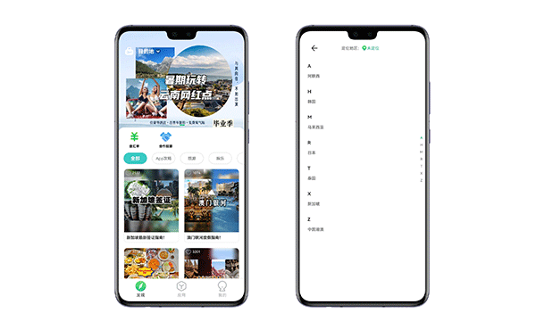 内容涵盖APP攻略、旅游推荐、娱乐项目、热门景点等,通过切换左上角的目的地可查看不同国家地区资讯。