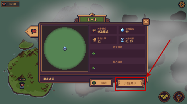 然后我们就可以点击屏幕中的开始关卡进行游玩了。